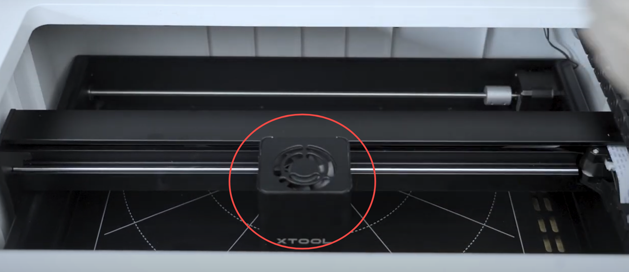 - 如果它晃动,请联系 xTool 客服以进行进一步诊断,并提供摆动的 X 轴机架和 M1 序列号 (SN) 的视频。SN 的位置,请参阅下图。
