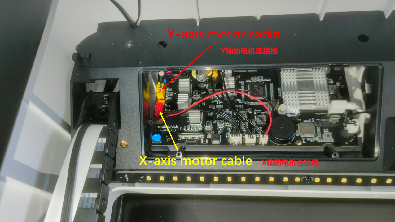- 当主控板上的 x 轴驱动模块发生故障时,激光模块也无法左右移动。