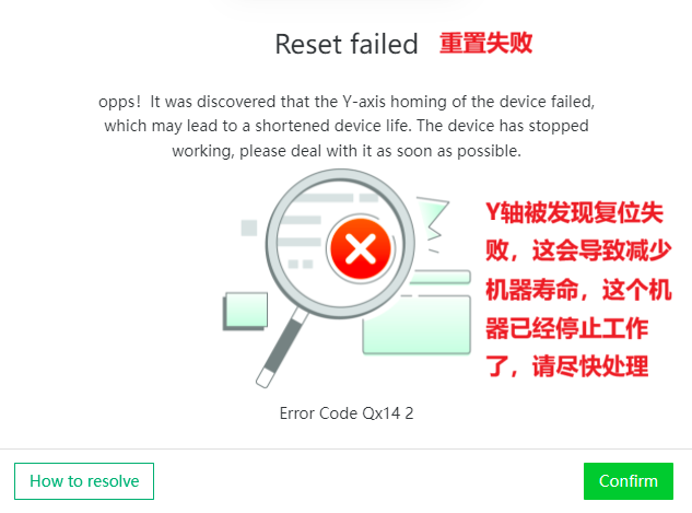 连接到 xtool Studio后,如果激光模块撞到前盖时,按钮指示灯变为红色并发出响亮的声音,则显示 Y 轴复位失败。请参阅本指南以获取故障排除建议。