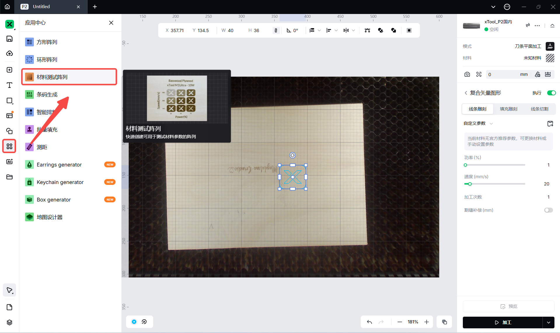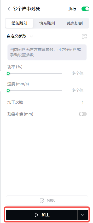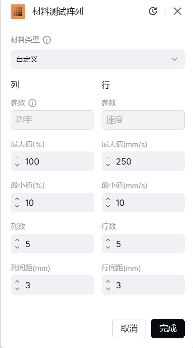 所有推荐设置均经过实验室测试,仅供参考。使用推荐参数设置进行加工的结果可能会受到环境因素、材料差异或其他客观因素的影响。