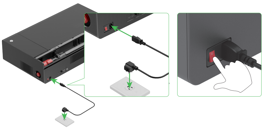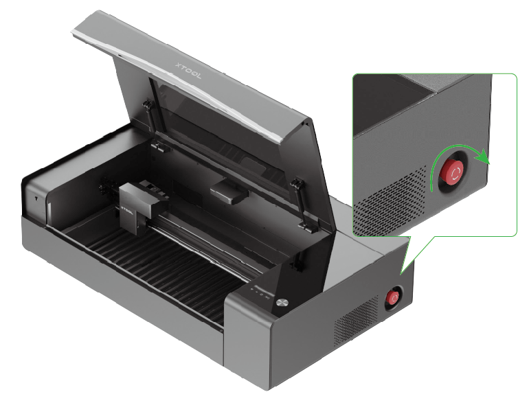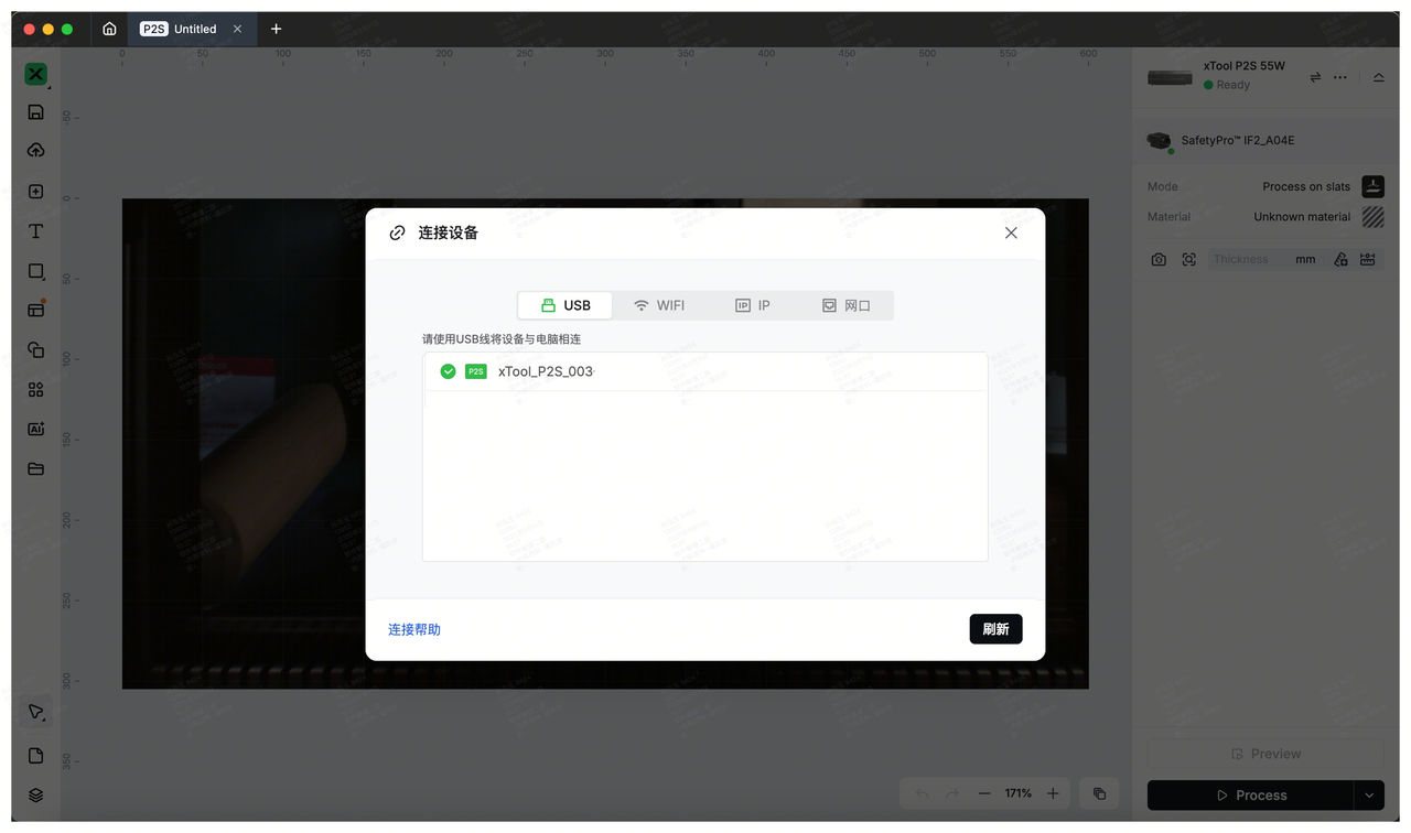 1. 开启 xTool P2/P2S,使用 P2/P2S 包装内的 USB 线将其连接至电脑。