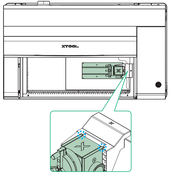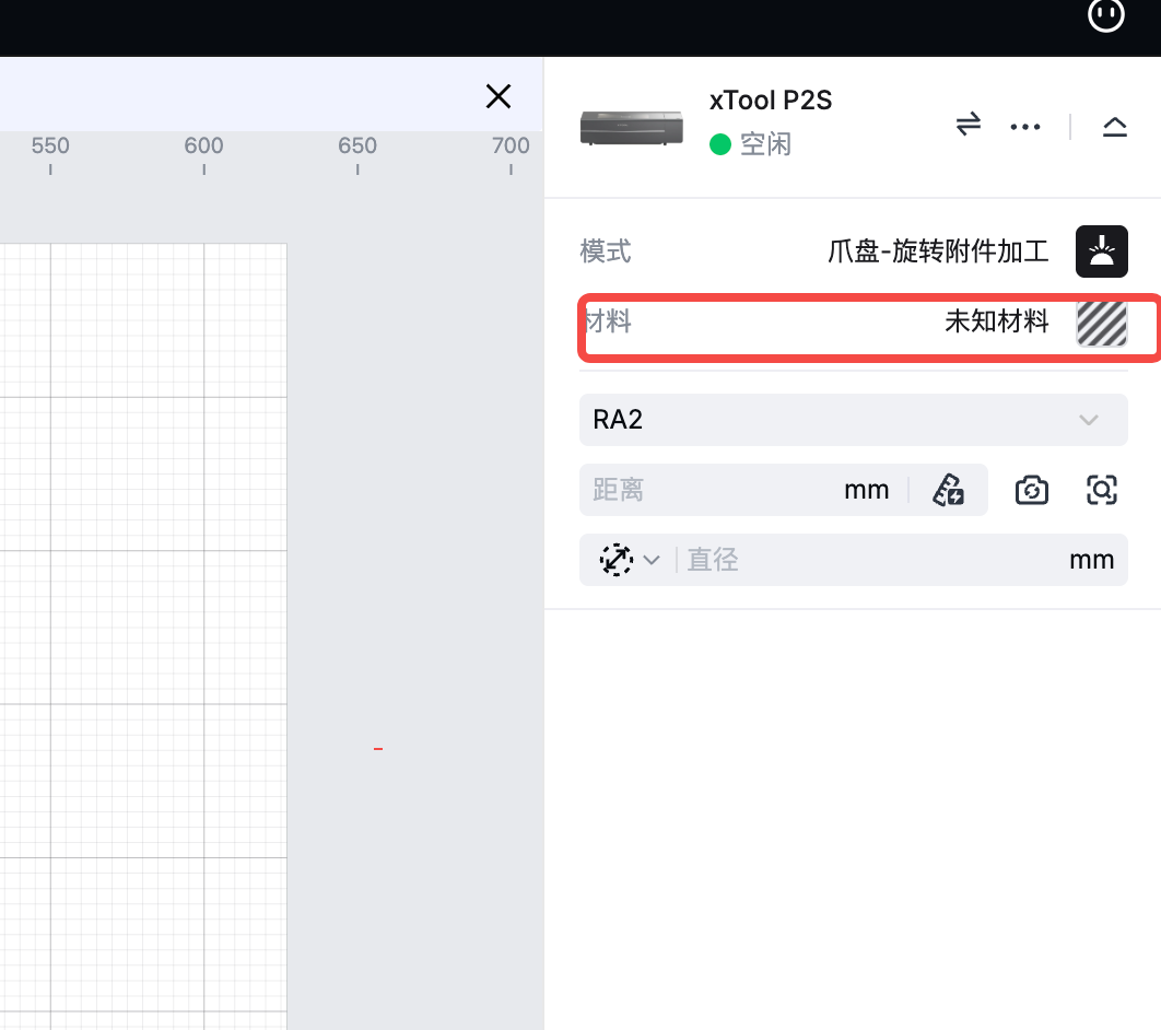 1. 请参阅安装旋转附件三代至 xTool P2/P2S,将爪盘模式下的 RA3 安装到 P2/P2S 上。