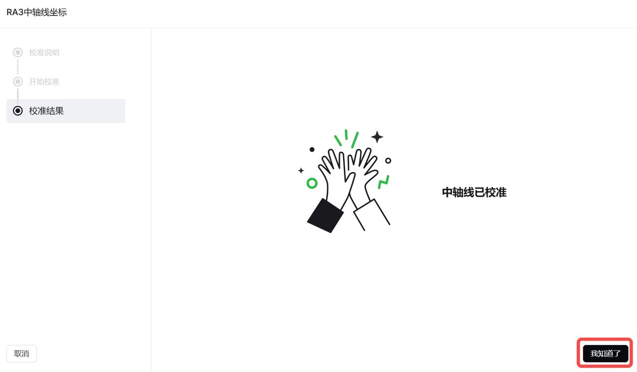 6. 校准完成后,自动进入“校准结果”页面,点击“我知道了”。