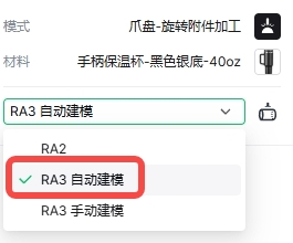 下文将以 RA3 的爪盘模式为例,说明该模式下自动建模的操作方法。