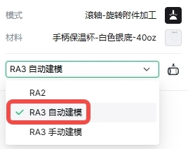 1. 在“材料”下方的下拉列表中选择“RA3自动建模”。