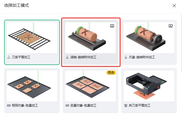 1. 需要在“模式”中选择“滚轴-旋转附件加工”。