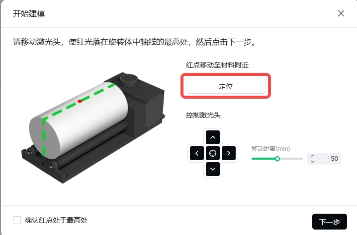6. 点击“下一步”,激光头将自动测量圆柱体的直径和高度。