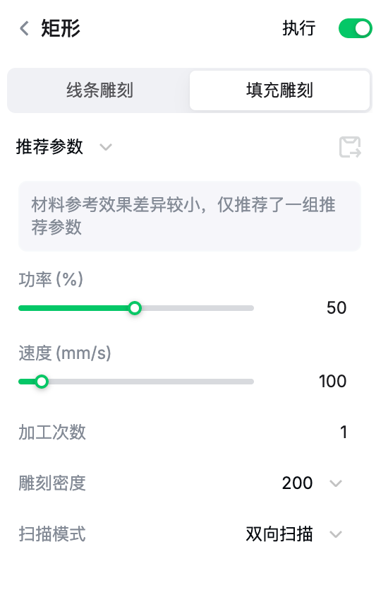 在软件界面右侧的参数面板中设置功率、速度、次数、雕刻精度等。