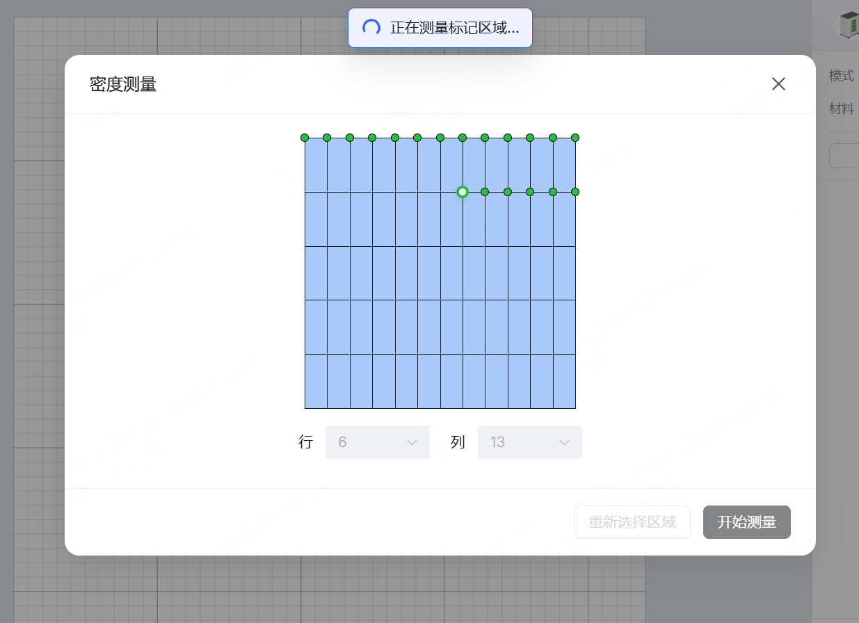 点击“开始测量”。xTool Studio软件开始测量所选的区域并显示测量进度。