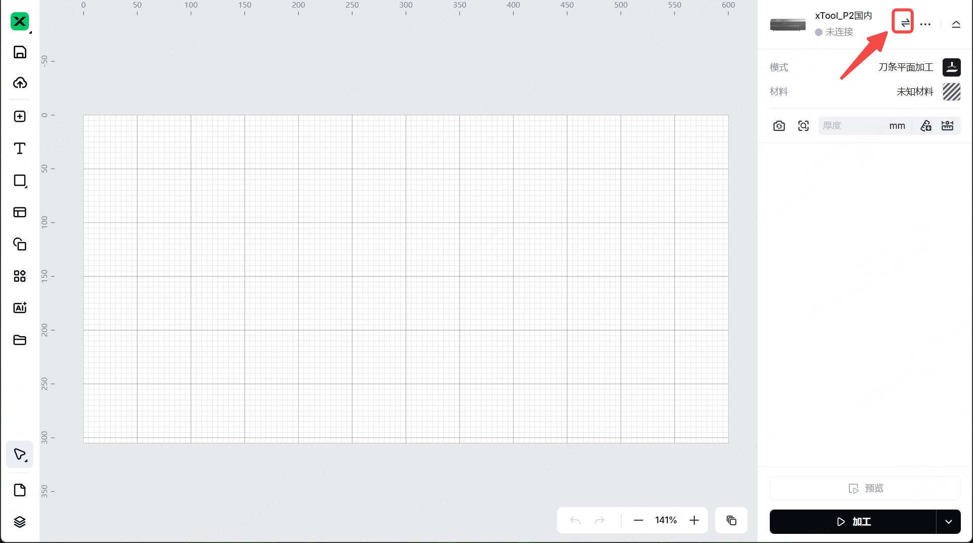 - 使用 USB 数据线将设备连接到电脑,打开设备电源开关,并打开 xTool Studio 软件。