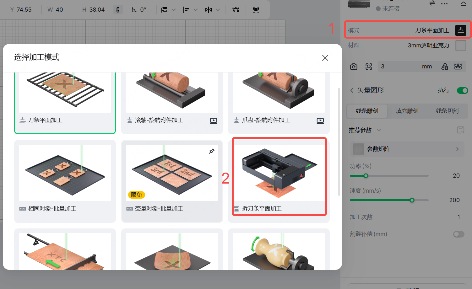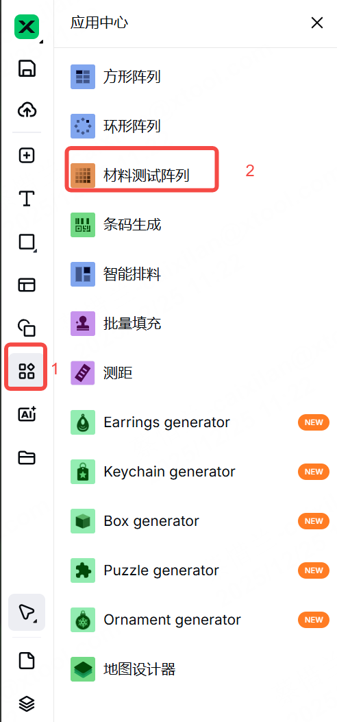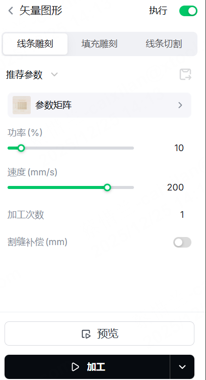 如加工 xTool 官方耗材,可直接采用推荐参数设置进行加工;如加工非 xTool 官方材料,可参考说明书提供的推荐参数或自行通过材料测试矩阵进行测试获取材料的最佳加工参数。