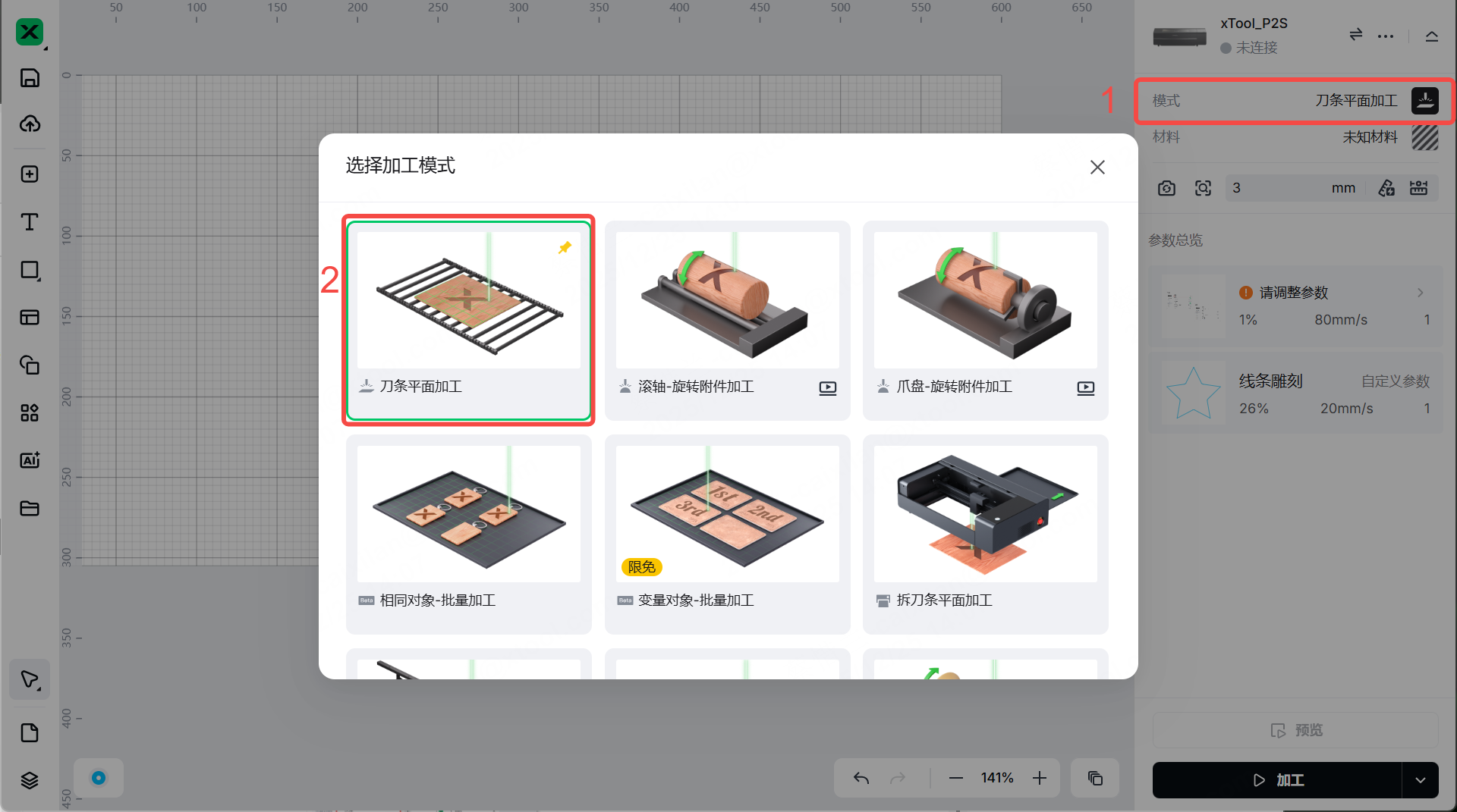 加工较长材料,参见“使用 xTool P2 送料配件”。