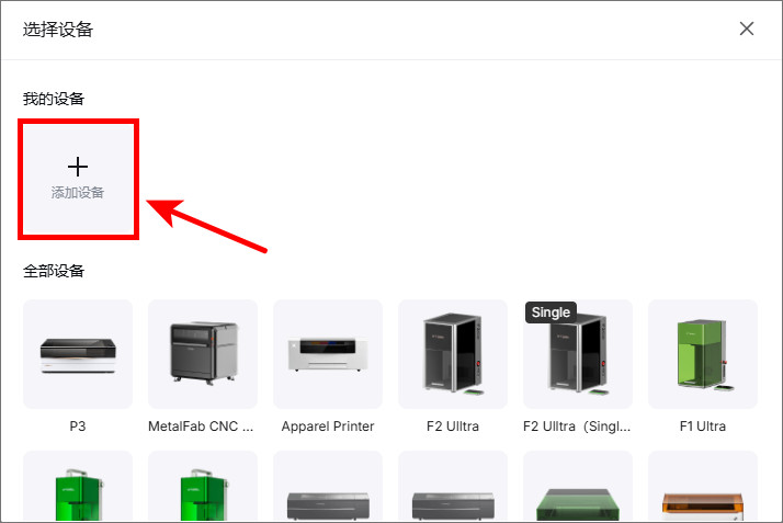 - 点击“连接设备”,等待 xTool Studio软件搜索可用设备。