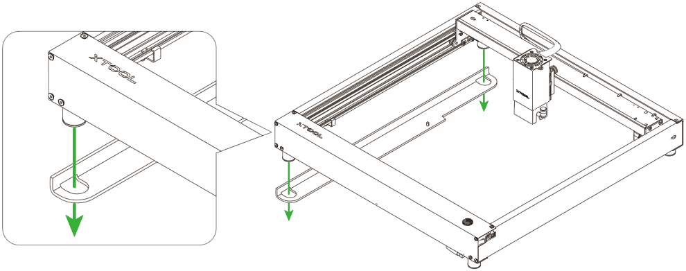 以下为安装 xTool D1 Pro 网框固定件的方法。