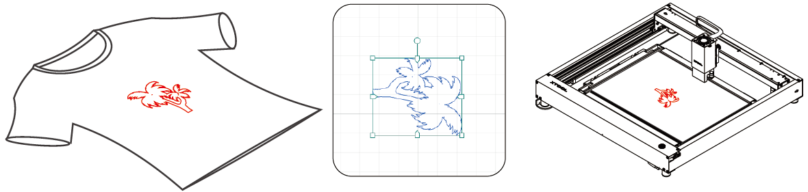 如下所示,若要将图案印刷到 T 恤上,实现如下图所示的效果,需制版前先在XCS中旋转图案使其水平垂直。