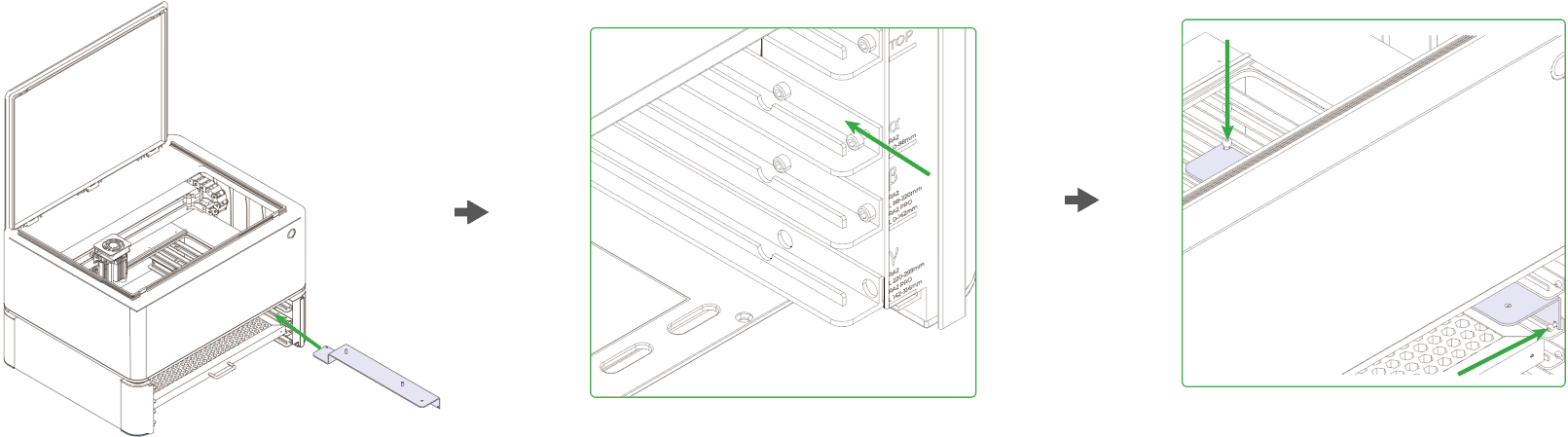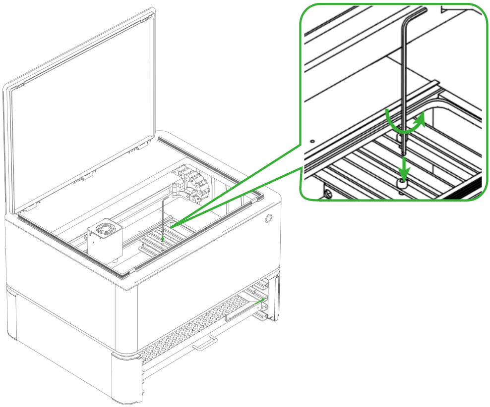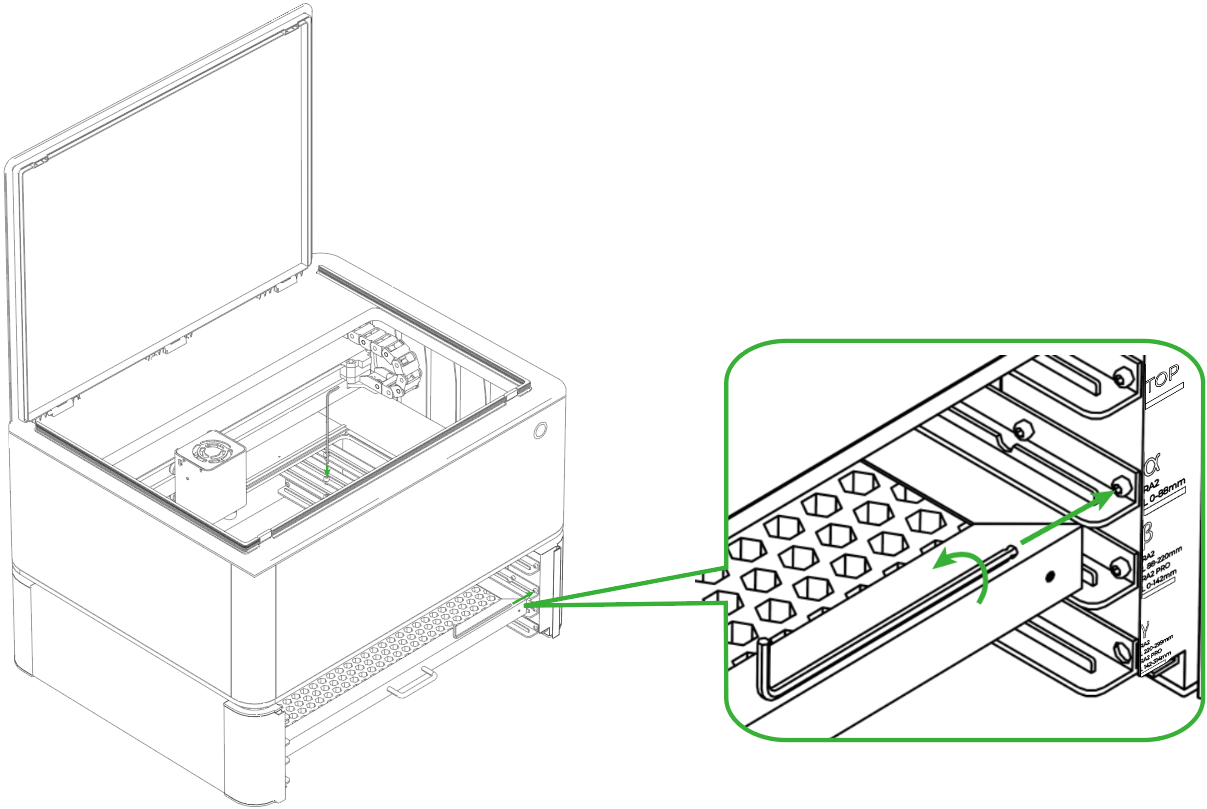 以下为安装 xTool M1 网框固定件的方法。该固定件只能用于固定丝网印刷机套装中的小网框,且需要使用 xTool M1 增高架。