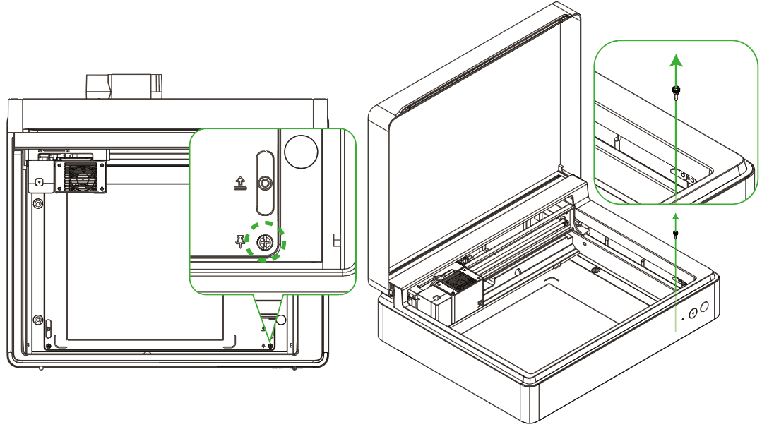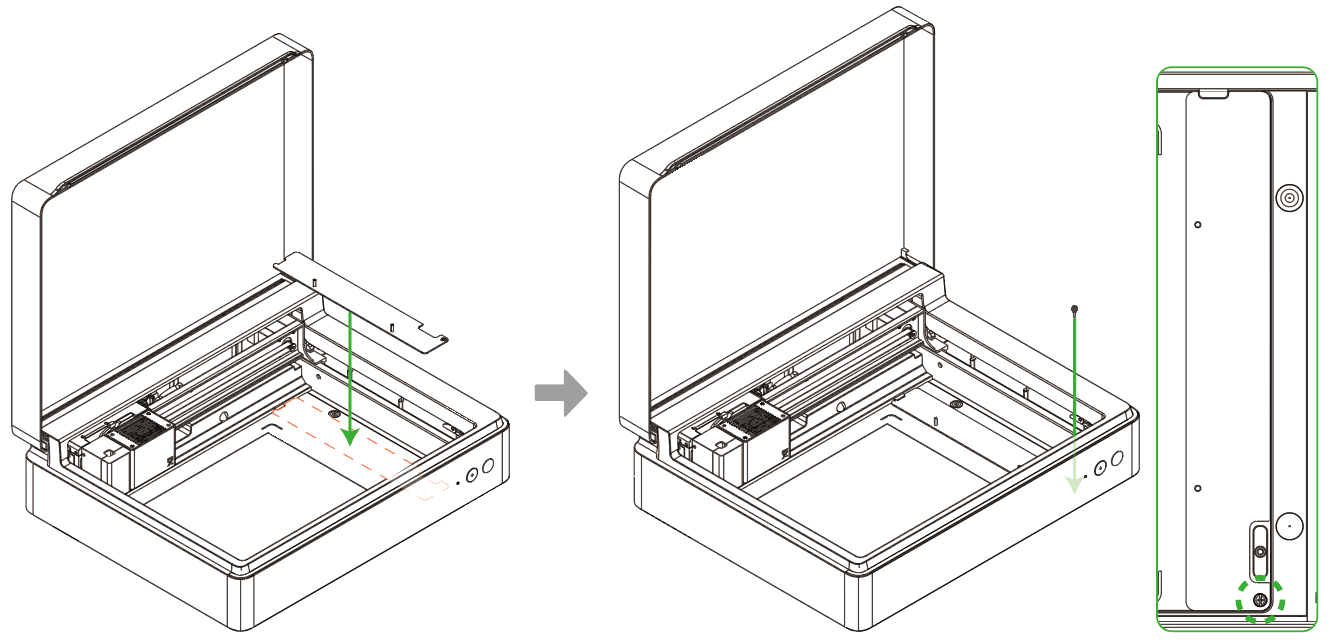用卸下的螺丝将边框固定件装入 xTool M1 Ultra 内。