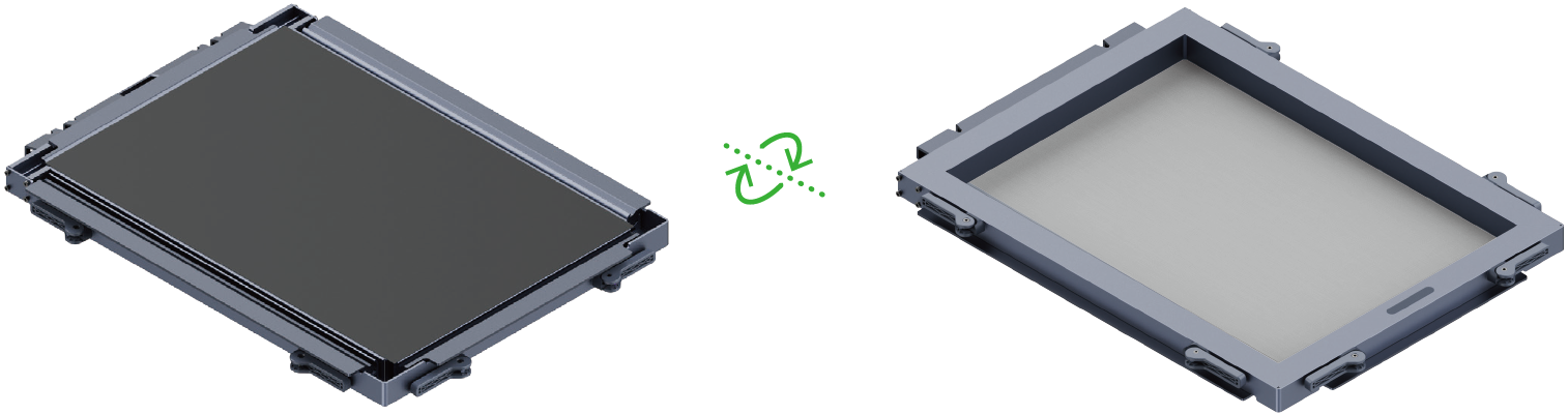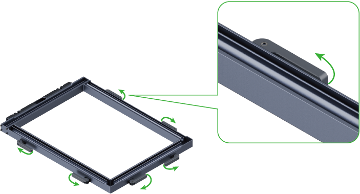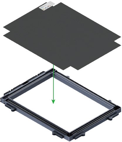 - 将纸板对准网框内侧边缘放入网框内,网版置于网框上,放置过程中请勿用手按压网版。