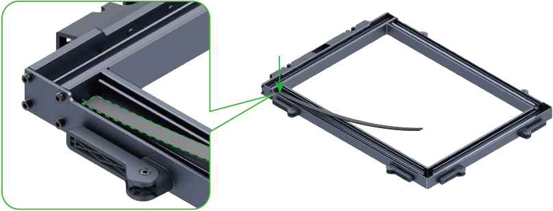 - 将网版边缘带胶纸区域压入网框边缘凹槽。