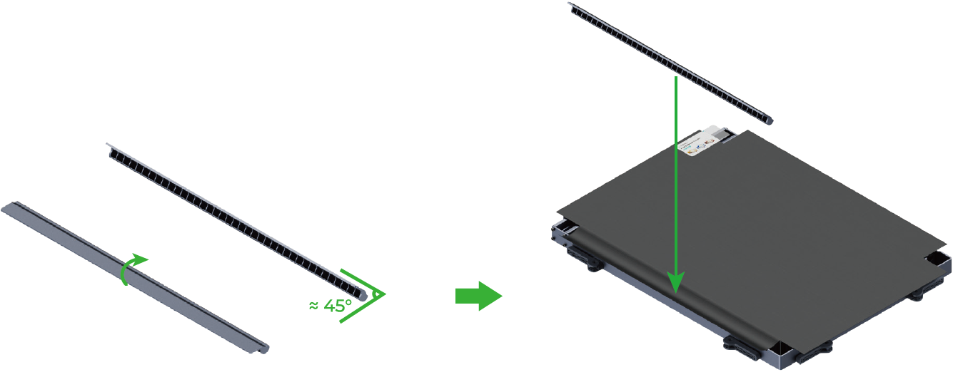 - 将固定栓按大约 45 度角放入凹槽,放置到位后旋转扳平。