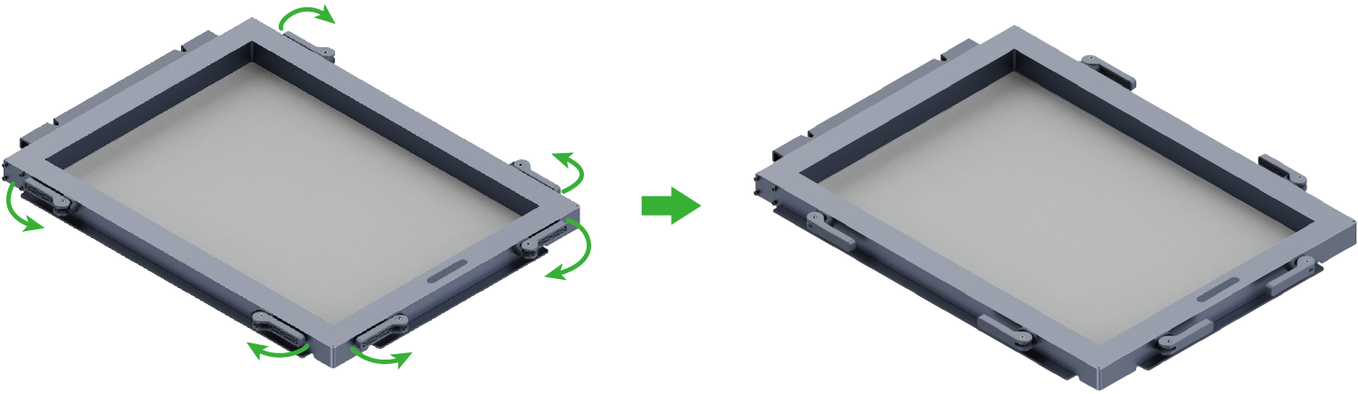- 将网框翻转,检查网版是否绷紧、固定栓是否掉落。