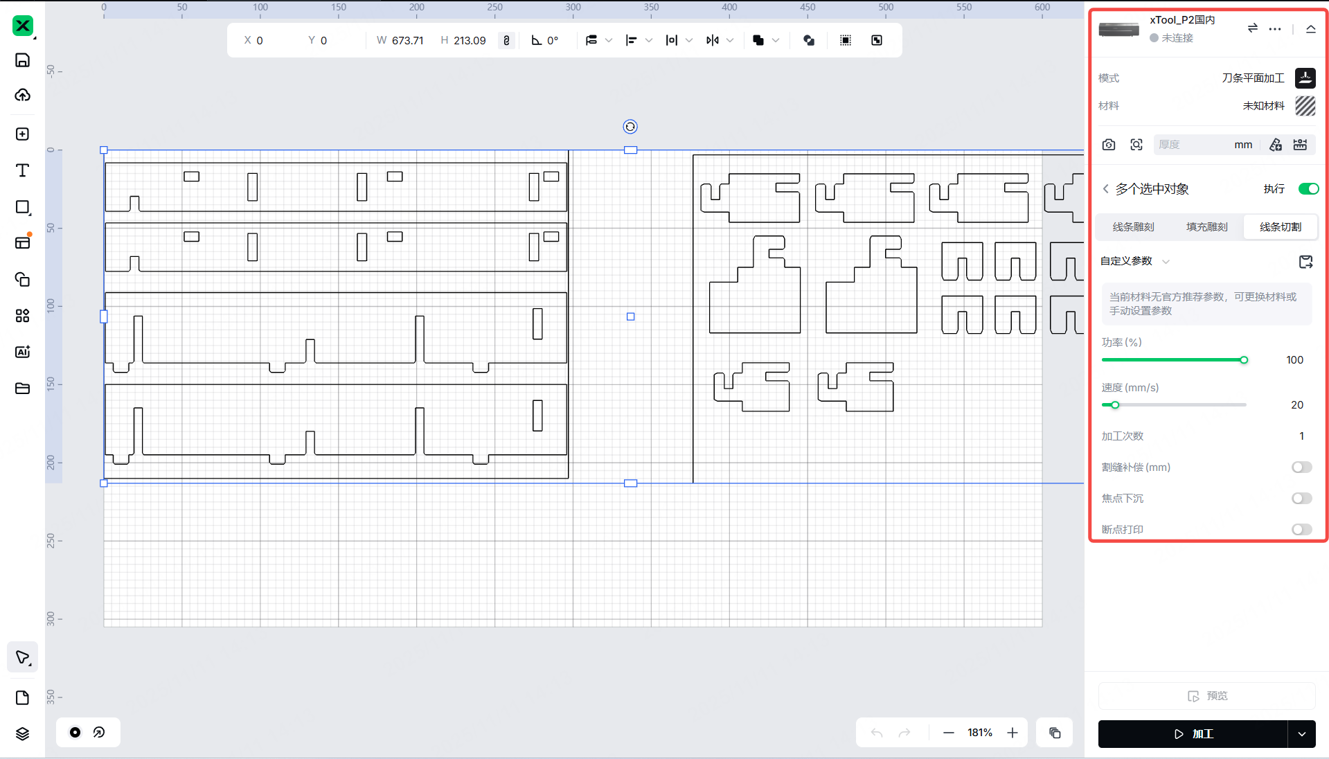 - 打开 xTool Studio 并导入框架固定件的设计文件。