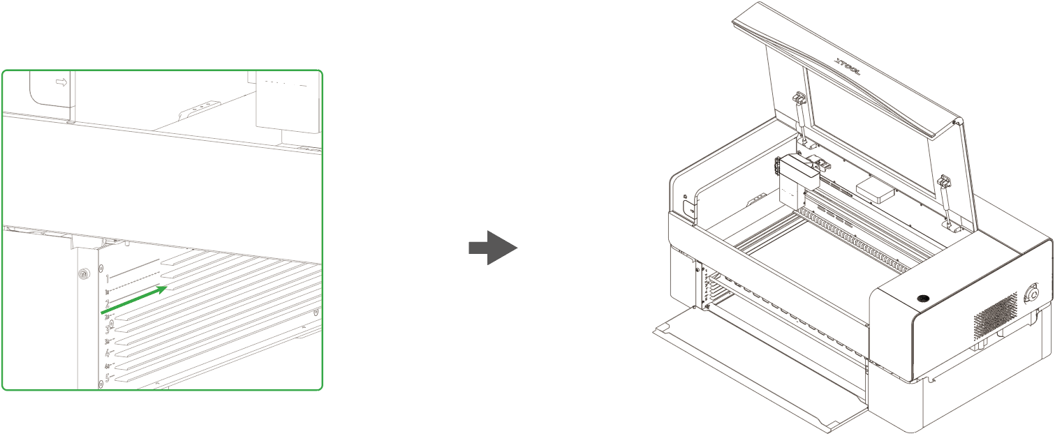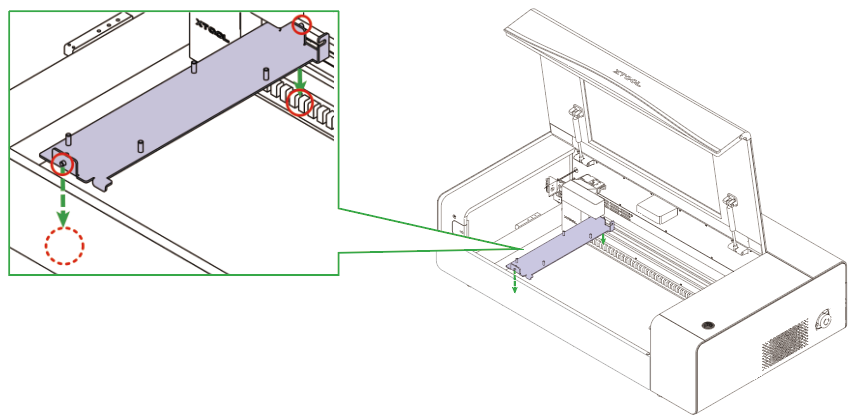 本页介绍如何将框架固定件安装到 xTool P2S 内部。