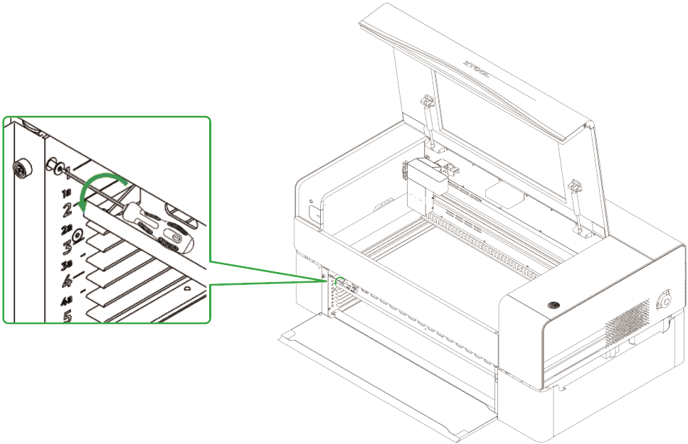 4. 使用 xTool P2S 套件中提供的螺丝刀松开机器左侧的两个螺丝。