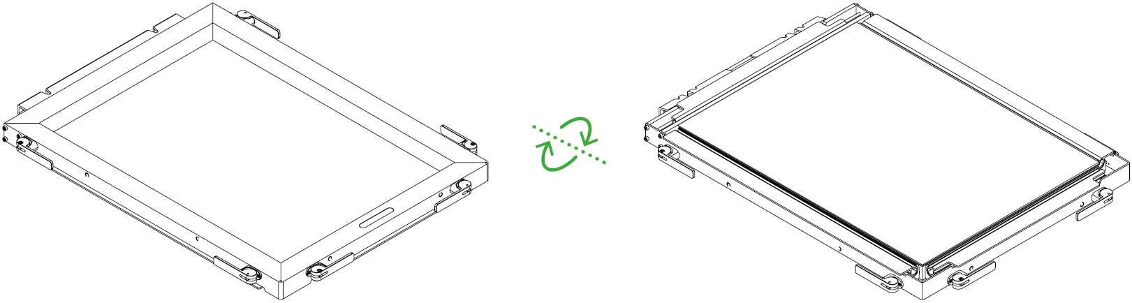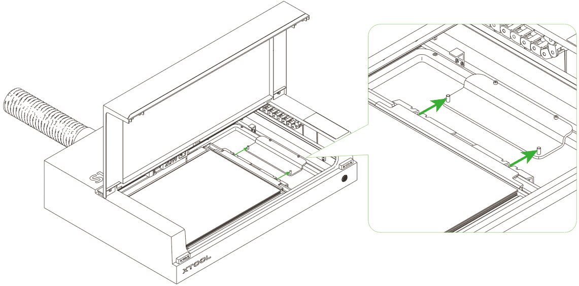 如你使用了扩展底座,建议将底板装回机器再进行网版制版。如你不想重新装回底板,也可在扩展底座上直接安装网框固定件,安装方法如下: