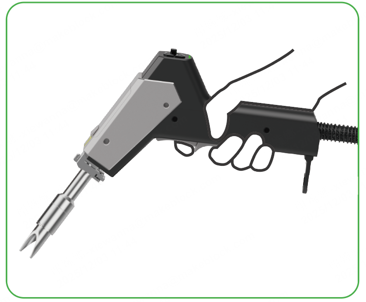 (4)将清洁喷嘴对准起始点,确保喷嘴的尖端与工件接触。然后,按住握持检测按钮和扳机开始清洗工件。