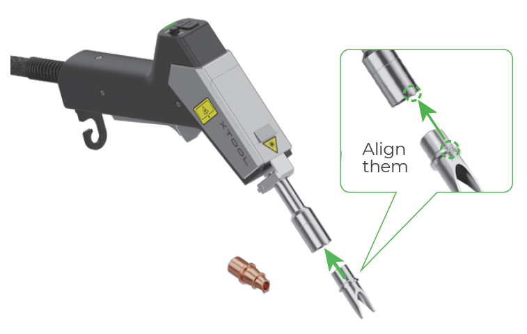 **注意:**xTool MetalFab 激光焊接机自带的清洁喷嘴仅用于手持清洗,请勿用于 CNC 清洗。