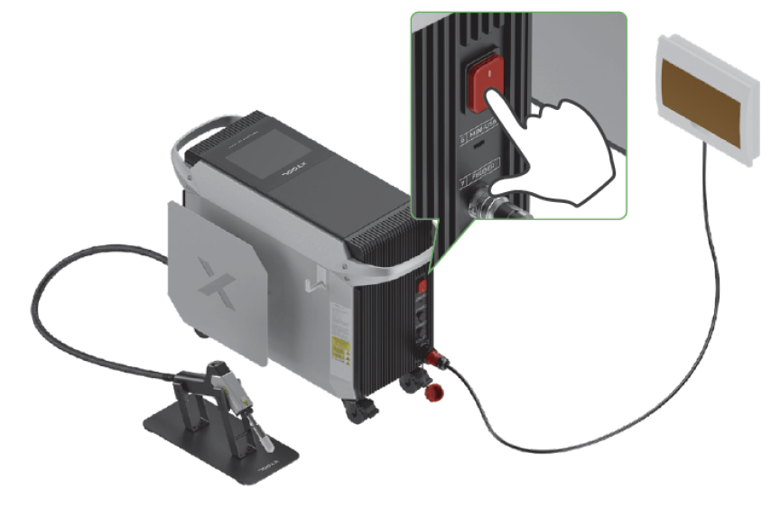 完成切割喷嘴更换后,请开启设备,检查从喷嘴射出的红色光点是否清晰完整。若红点形状不完整或者光点模糊,请进行焊枪红点位置矫正,以免激光切割时烧坏喷嘴。