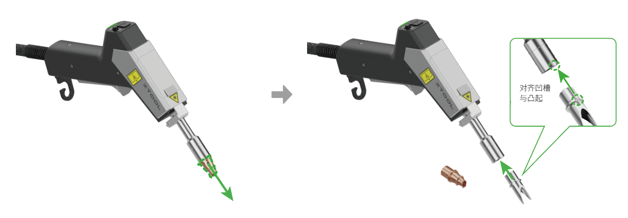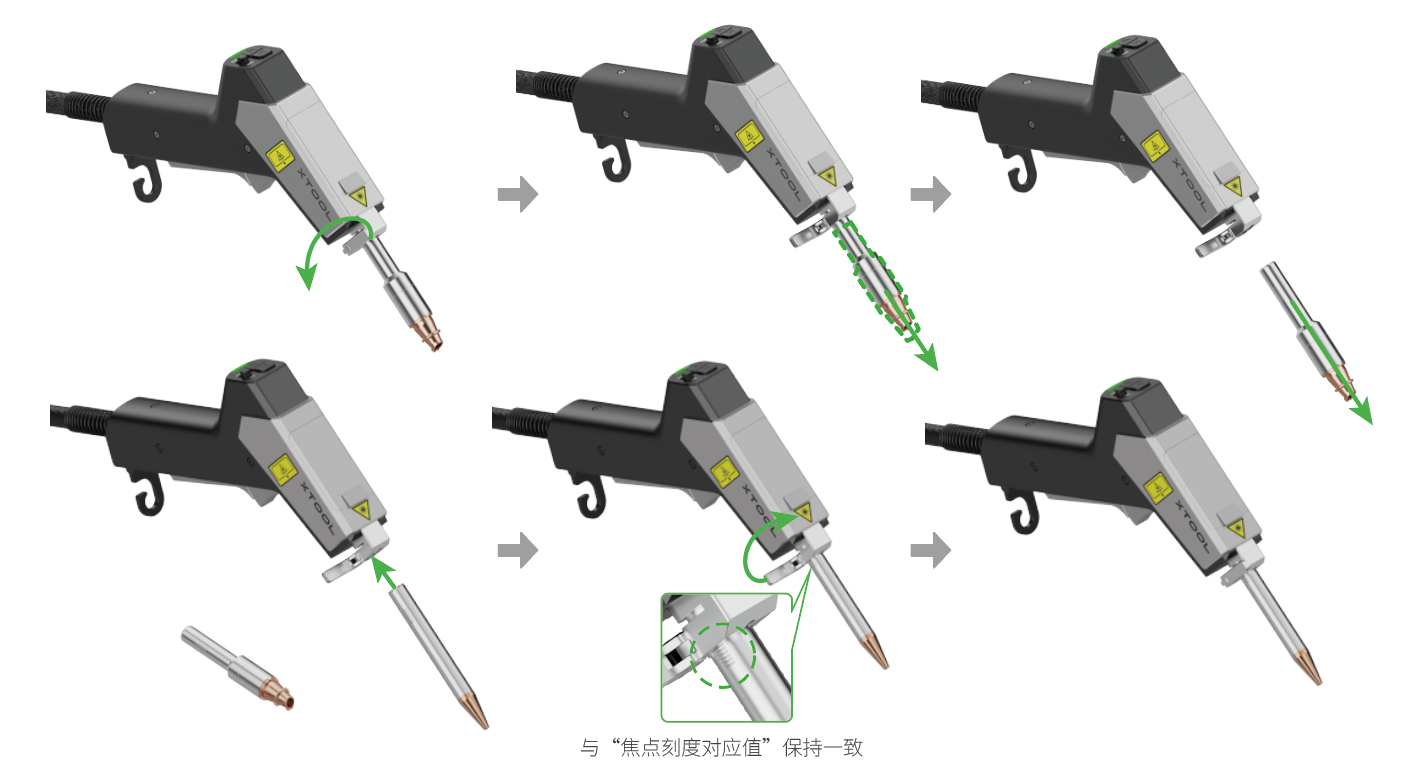 焊接喷嘴与清洁喷嘴的更换方式相同。