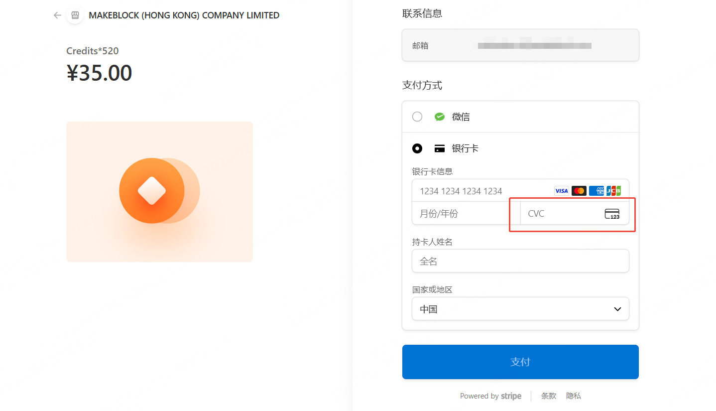 支付支持:中国大陆用户目前暂仅支持 银联/UnionPay 或 VISA 的信用卡支付,支付时需填写卡片背面的 CVC 安全码。