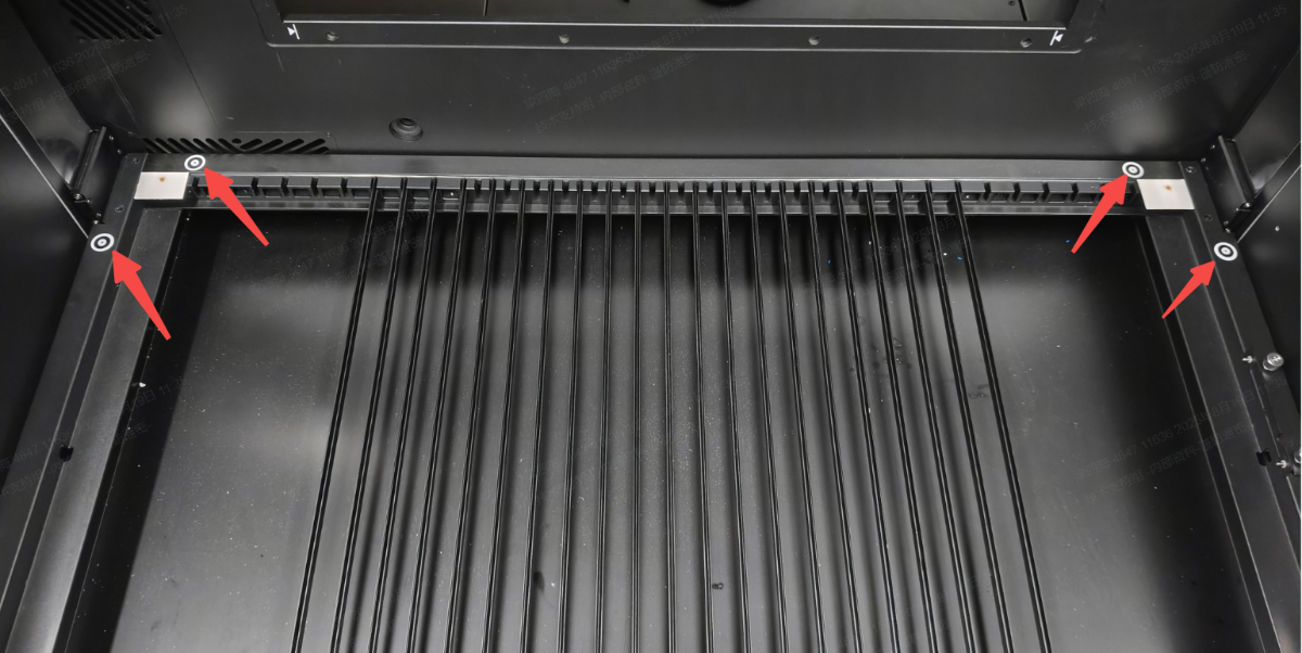 如果材料已经放置,请将提升平台升高至30毫米或以上。但请确保材料表面至少低于激光模块喷嘴5毫米。