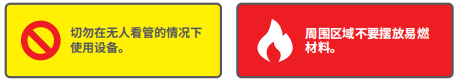 ■ 切勿在无人看管的情况下使用设备。如果设备在设置错误的情况下运行,并且长时间无人看管,或者设备在运行时出现机械或电气故障,则可能引发火灾。