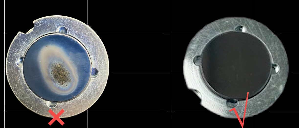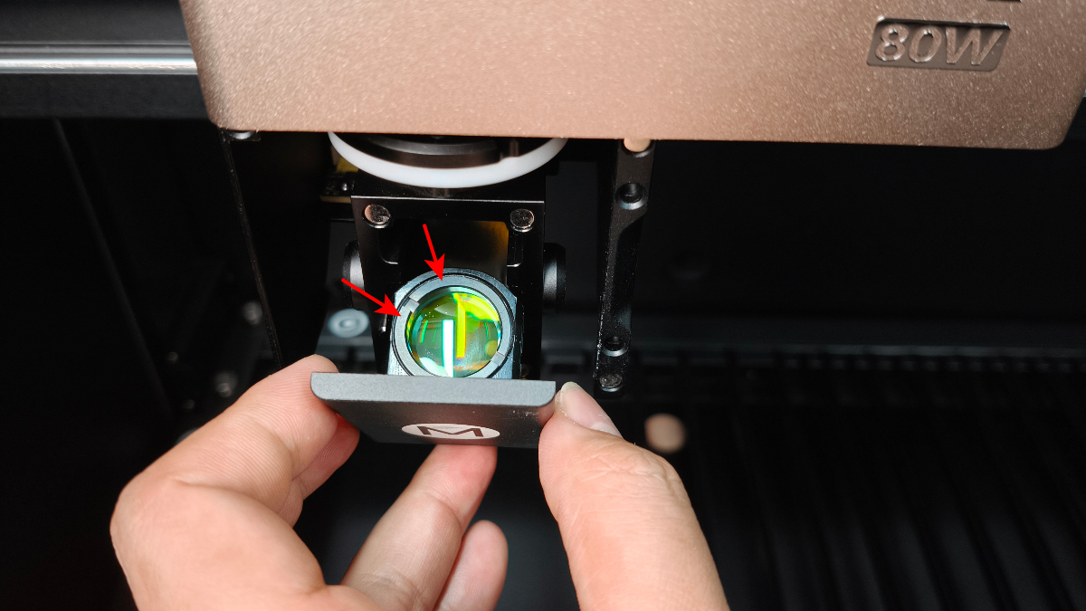 拆下激光透镜上的螺丝,取出激光聚焦镜,观察聚焦镜是否完好。