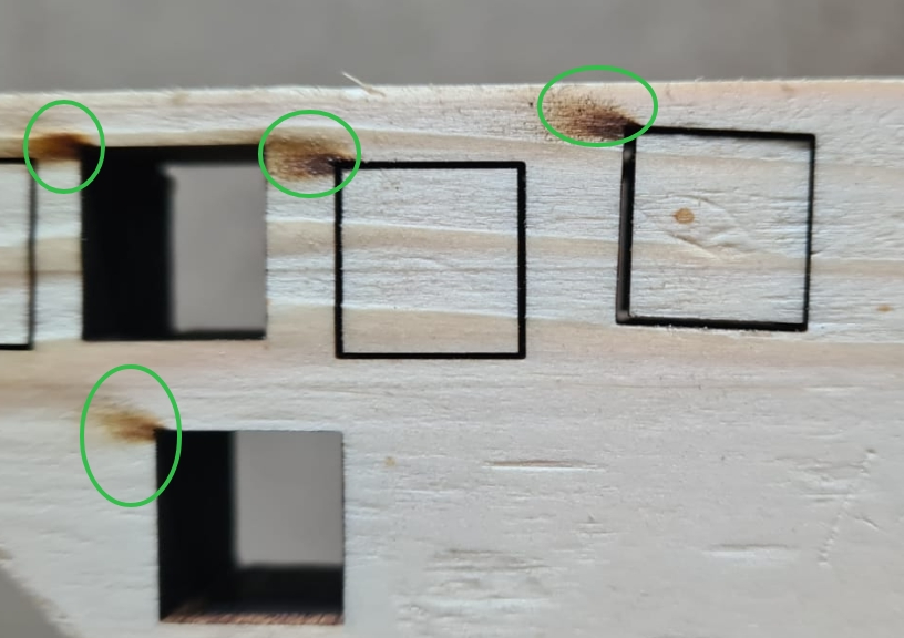 在激光切割过程中, 材料可以被切割,但会严重泛黄和变黑。