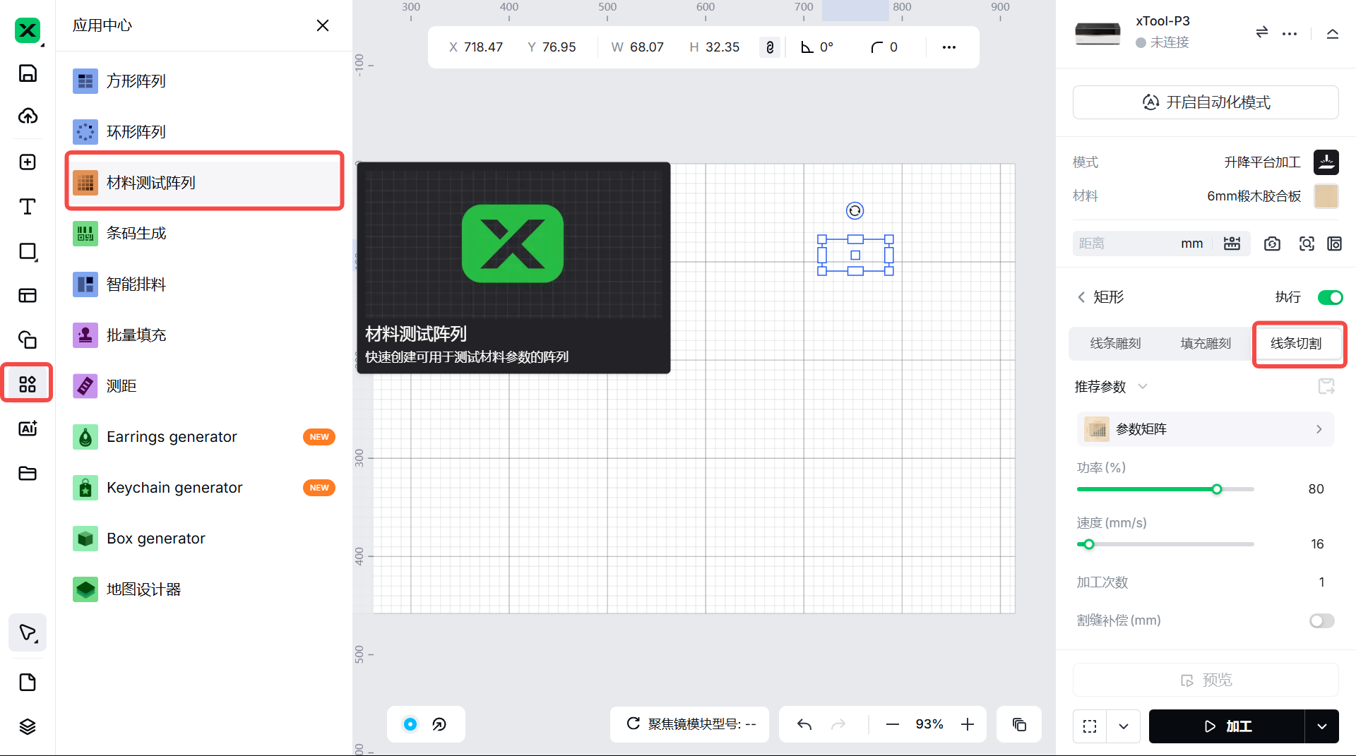 (3) 如果没有,请将切割功率调整为 100% 并进行激光切割。