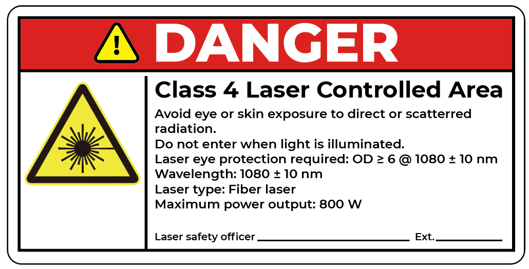 所需培训: 在 4 类条件下操作时,需要额外的激光安全培训,并且必须进行准备和管理。