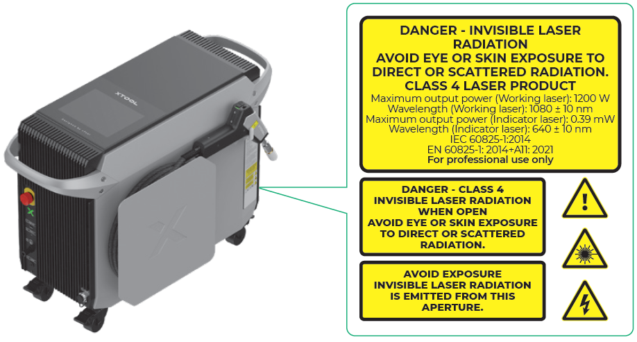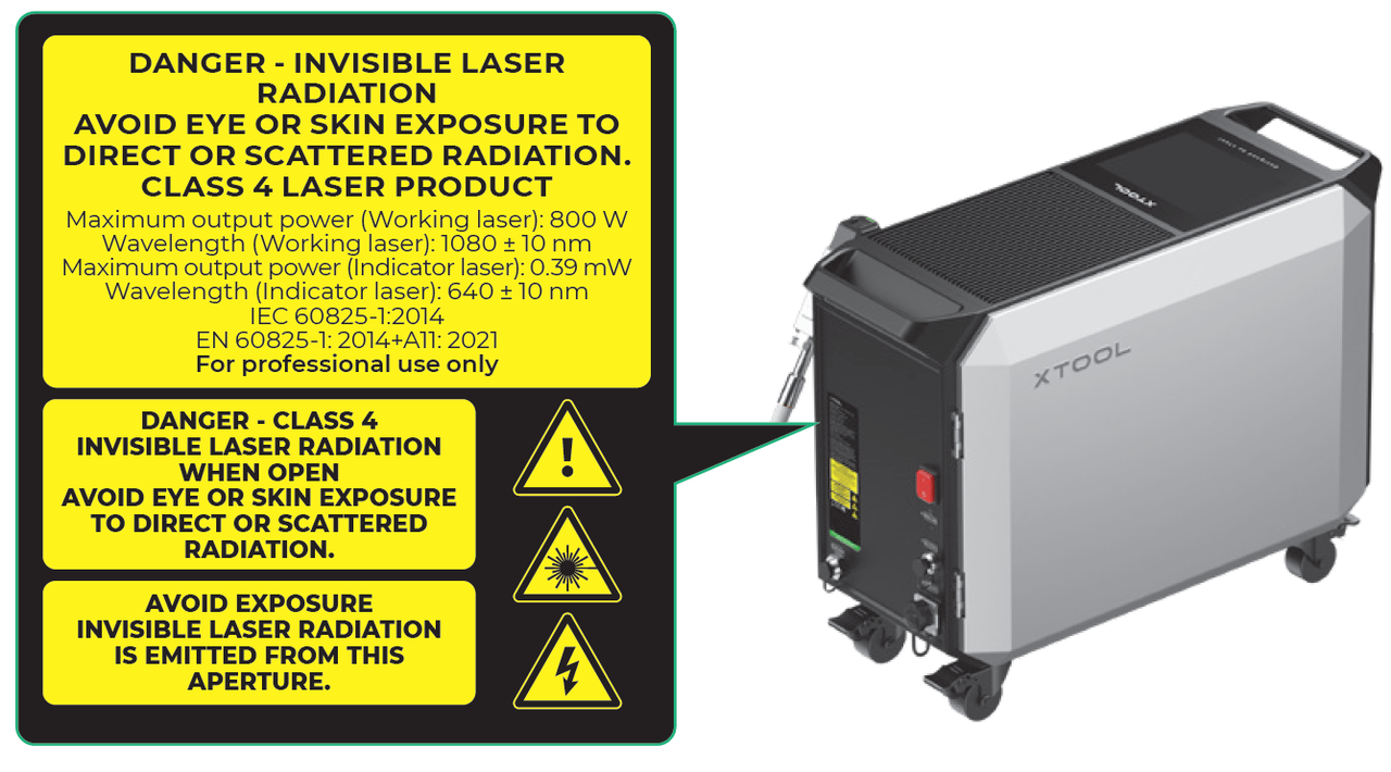xTool MetalFab 激光焊接机被归类为 4 类激光产品。