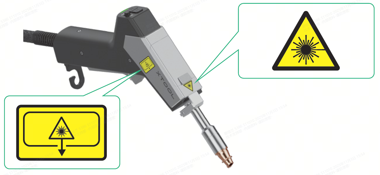 GB 7247.1-2012 及相关国家标准为安全使用波长在 180 nm 至 1 mm 之间的激光提供了分类依据和安全指导。主要安全责任由指定为激光安全人员的人员承担。本文档旨在协助您担任一台或多台 xTool MetalFab 激光焊接机的激光安全人员。它不提供足够的信息来建议您担任任何其他激光器的激光安全人员。