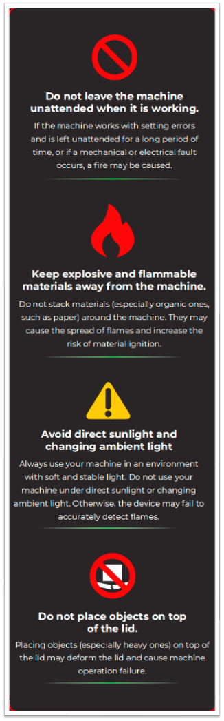 您的 xTool S1 还存在其他危险。请始终按照手册和 XCS 中的所有指示操作您的 xTool S1,以最大限度地减少危险。