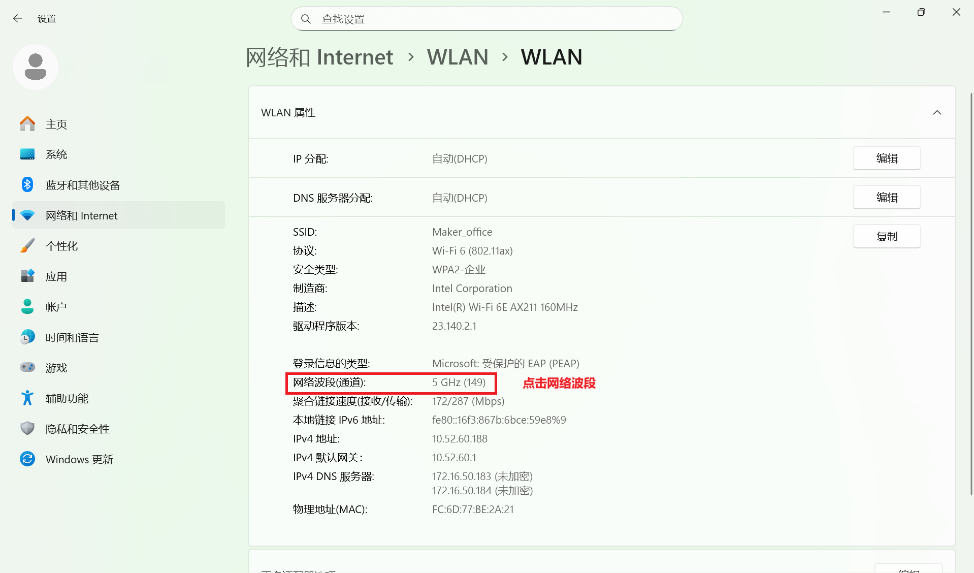 - 按照以下说明检查 Wi-Fi 网络是否为 5GHz 频率。