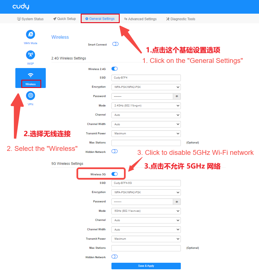 如果是这样,请访问路由器的无线设置以禁用 5GHz 网络。