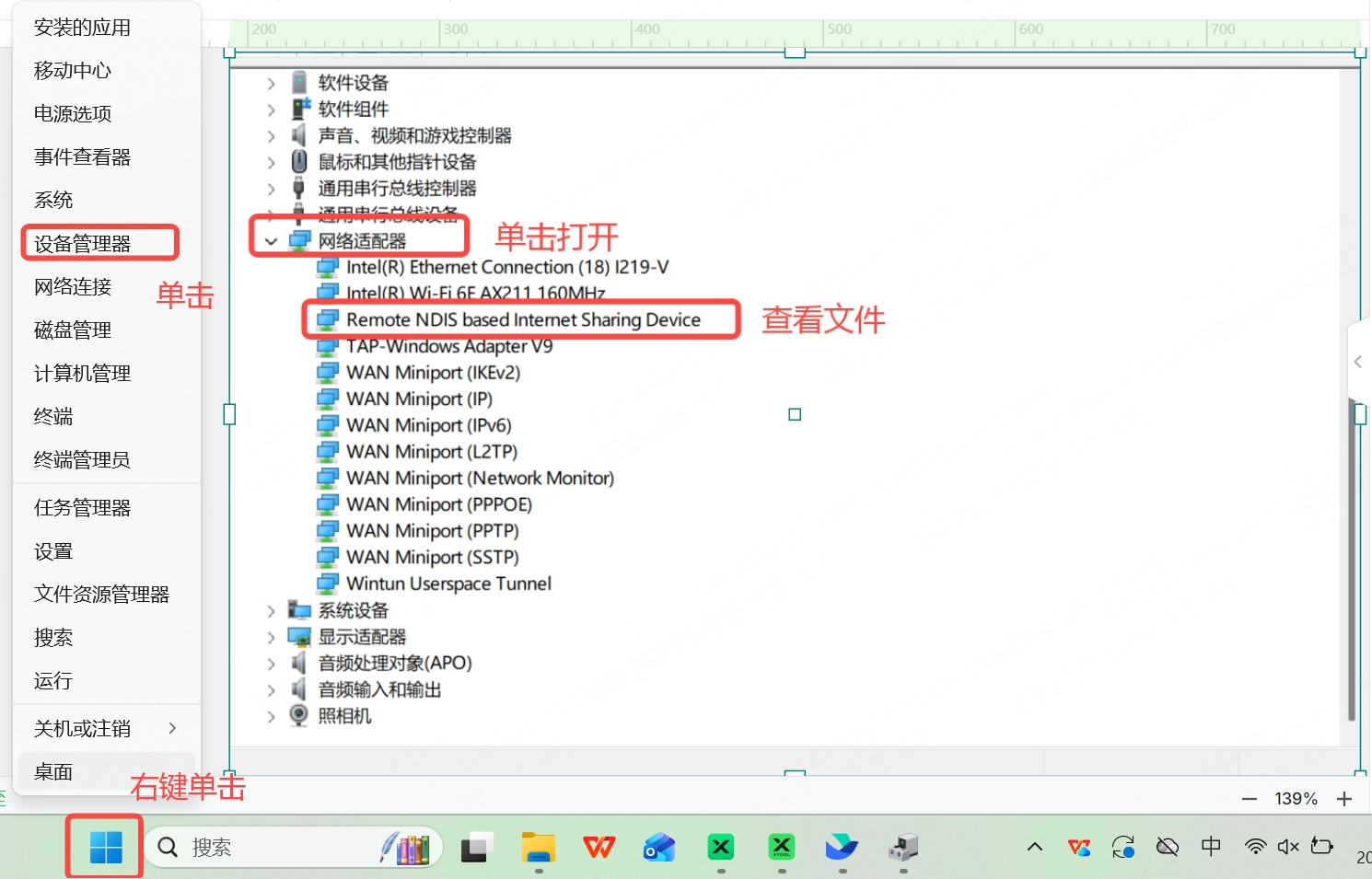 - 在网络设置中,检查是否出现多个“RNDIS/以太网小工具”驱动程序。