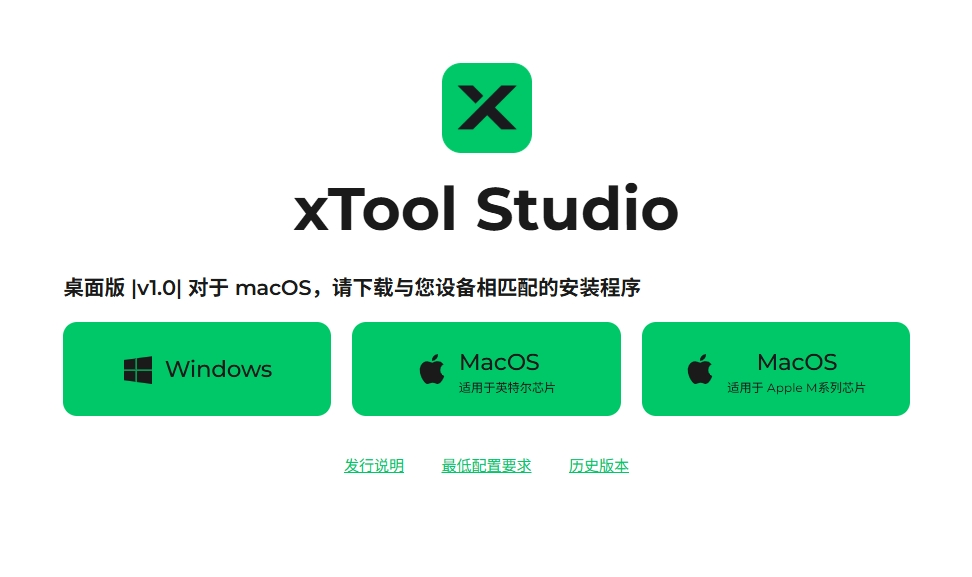 进入下载页面 https://www.makextool.com/software/ 即可获取最新版本的 xTool Studio。根据你的操作系统下载 xTool Studio 软件。