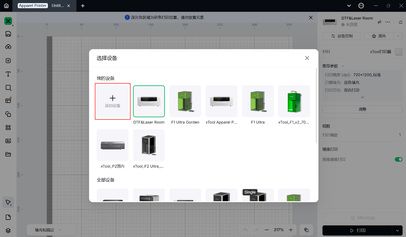 如果这是您第一次连接到 xTool Studio,请单击右侧的“ 连接设备 ”按钮。