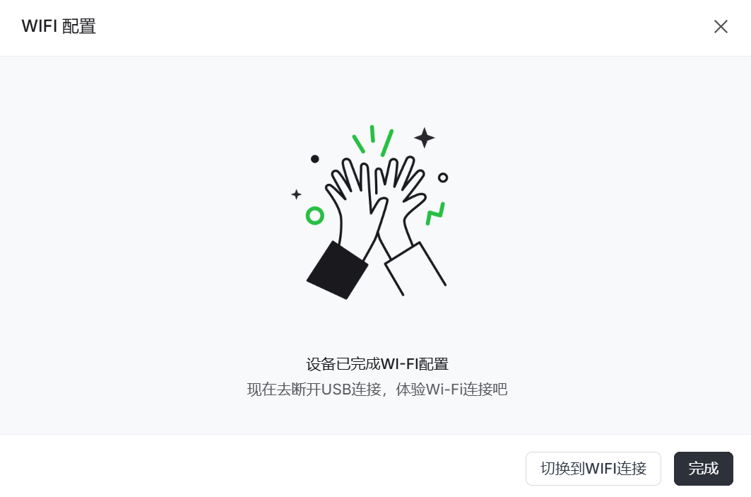 在继续 Wi-Fi 设置之前,请确保您的设备已通过 USB 数据线连接到电脑。