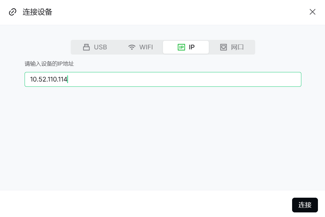 3.返回连接设备页面,在 IP 选项卡上输入 IP 地址,然后单击连接。